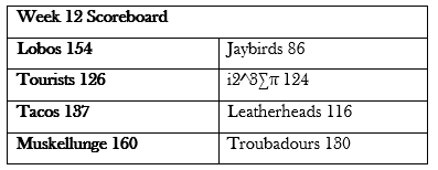 Next up for the Muskellunge is a road game against the Leatherheads, while the Troubadours seek to salvage their season against the Tourists in Tortilla Flats.