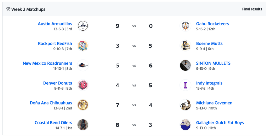 Over in the Pacific, the Austin Armadillos shut out the Oahu Rocketeers 9–0, led by a breakout week from Isaac Paredes, who smacked 3 home runs and drove in 6.