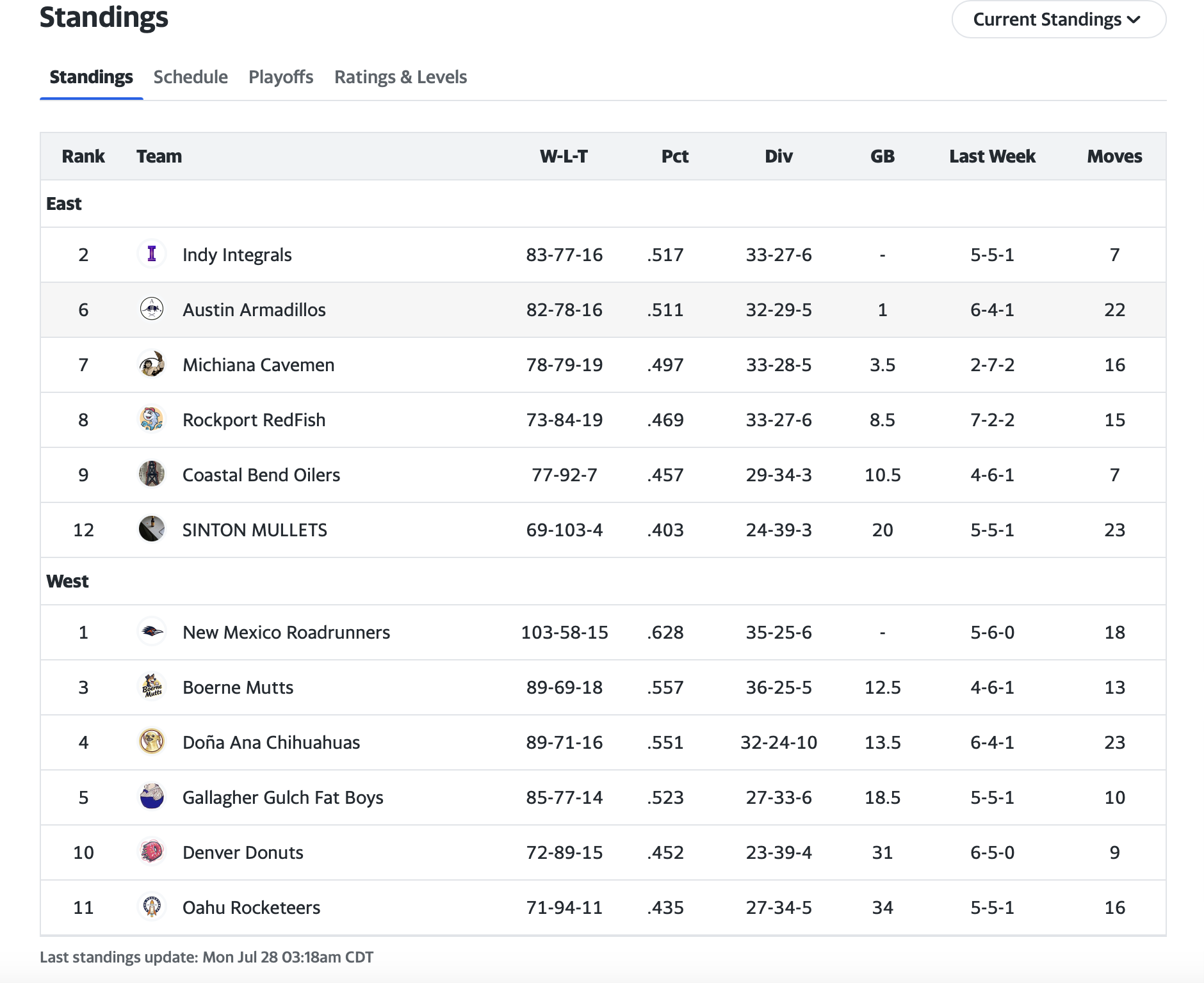 The Roadrunners’ loss didn’t do much to affect their standing. They still have a healthy lead overall but would like to make a statement after dropping last week’s matchup to Denver. The RedFish, meanwhile, are suddenly knocking on the playoff door.