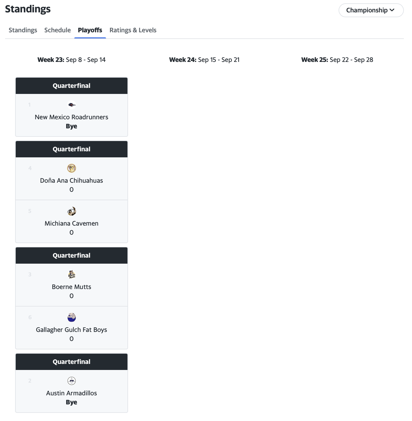 Championship Quarterfinals (Week 23)